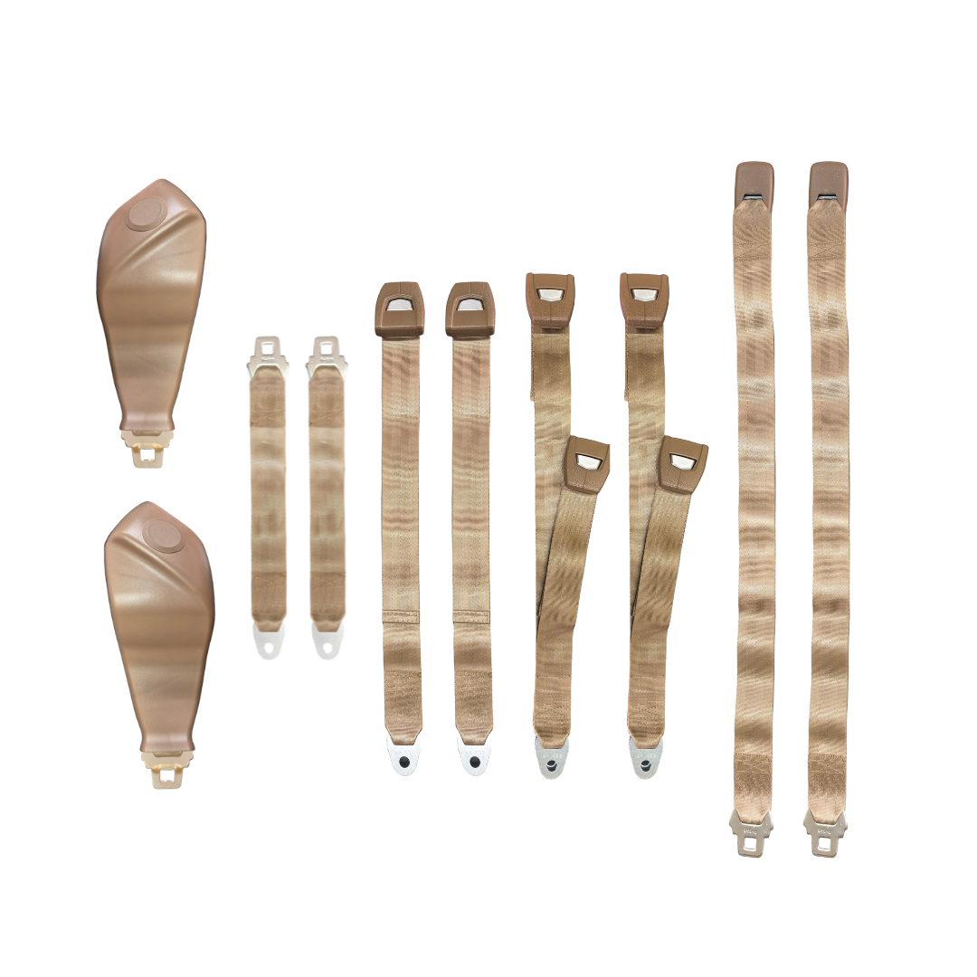New reproduction seat belt sets for 1971 B,E-body vehicles. Replace your damaged, worn out, or missing seat belts with our original style reproductions. Made using polyester heavy webbing to look and function just like originals. They feature authentic style buckles and retractors in abs plastic housings. These reproductions come with both front and rear seat belts.